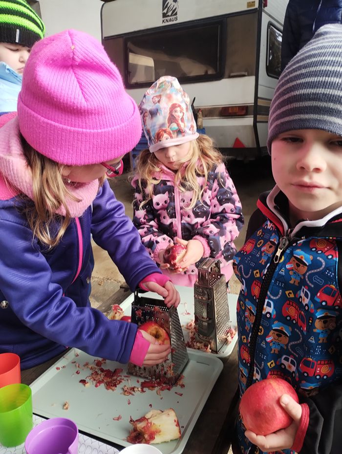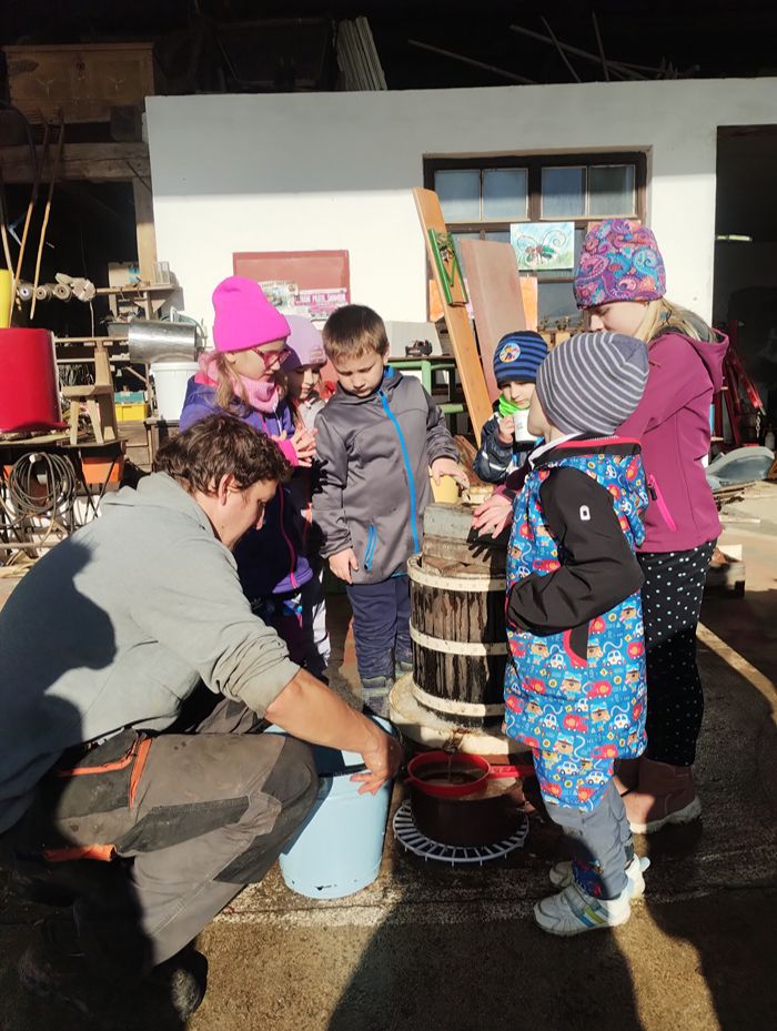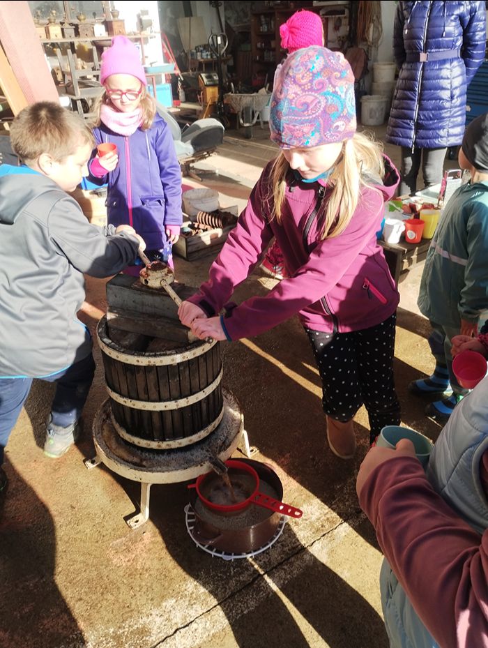 Počasí nám přálo a mošt byl výtečný. Cestou zpět jsme ještě mohli nakrmit ovečky a oslíky.